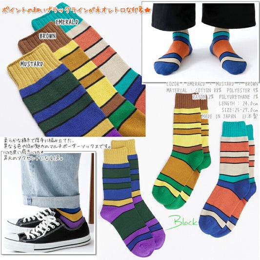 Jake(ジェイク)【Men's メンズ レディース大きめ】French Bull(フレンチブル)No.21-01231 ブロックソックス(3色)【マルチボーダー 冷えとり】ブロックソックス