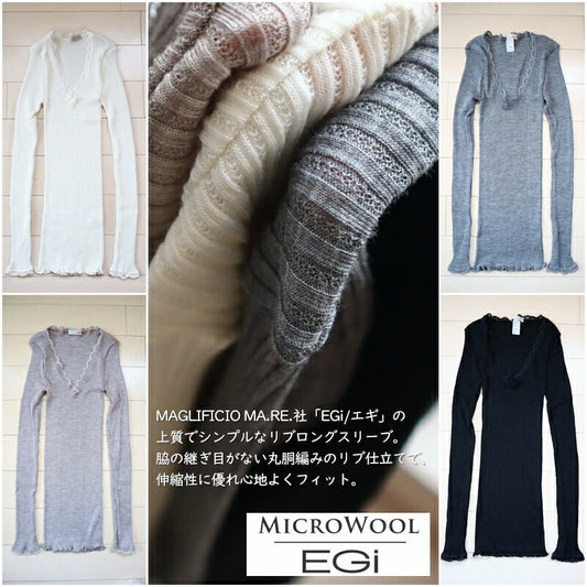 MAGLIFICIO MARE(マグリフィシオ マーレ) EGi エギマイクロウール リブ ロングスリーブ 307(4色)【MICRO WOOL ストレッチインナー レディース 継ぎ目がない丸胴編み 高品質 正規品】