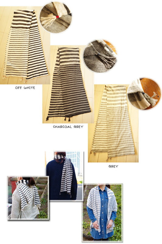 Morning calm(モーニングカーム)コットンイレギュラーボーダーストール(リバーシブル)(3 color)【数量限定】【マフラー/スヌード/暖かい】