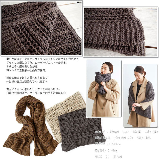 French Bull(フレンチブル)No.17-01211 ショコラストール(3色) 【リサイクルコットンシルク 無地 ショール 羽織 防寒 冷えとり 冷房対策】【MADE IN JAPAN 日本製】
