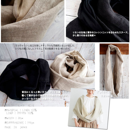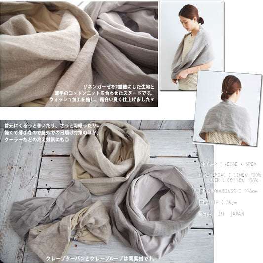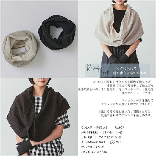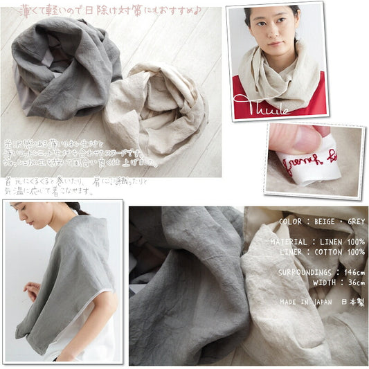 French Bull(フレンチブル)No.17-02221 チュイールループ(2色)【麻リネン 綿コットン 無地 ショール スヌード ストール 羽織 防寒 冷えとり 冷房対策 日焼け対策】【日本製】