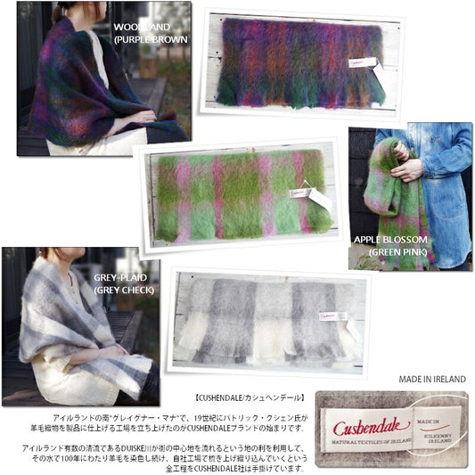 CUSHENDALE(カシュヘンデール)【送料無料!少量入荷】【Made in Ireland/アイルランド製】モヘア チェックストール(3 color)【スヌード/羽織り/防寒/マフラー】【チェック/アイリッシュ/梳き上げ織り】