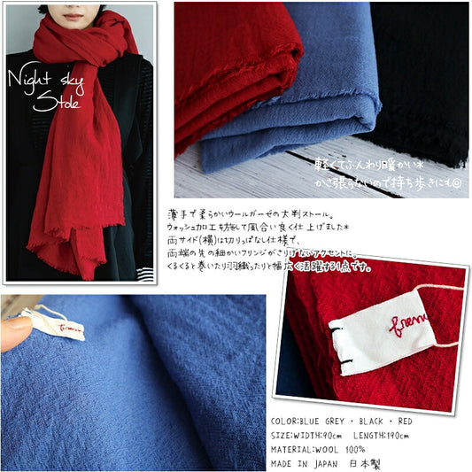 French Bull(フレンチブル)No.17-03212 ナイトスカイストール2022-21AW(3色) 【ウォッシュ加工 ウールガーゼ 限定色 無地 ショール 防寒 冷房対策 日焼け対策】【ウール100% 日本製】