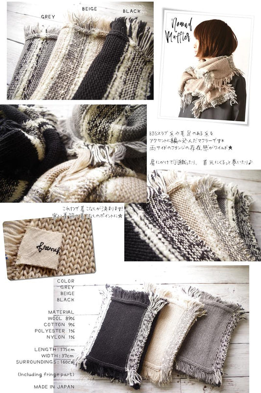 French Bull(フレンチブル)No.17-05182 ノマドマフラー(3色) 【ストール マフラー ショール スヌード 防寒】