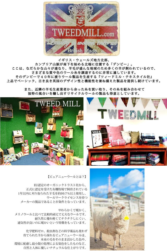 TWEED MILL(ツイードミル)ブランケットストール(フィッシュボーン・チェック)【大判/ショール/ひざ掛け/英国製/イギリス製】【ピュアニューウール/水洗い可能】【メール便配送不可】【MADE IN ENGLAND】【レディース/ユニセックス】