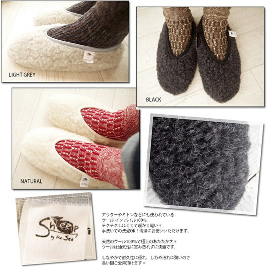 SHEEP BY THE SEA(シープバイザシー)SLIPPER BALLERINA スリッパ(3色)【ポーランド製/ウール100%/暖かい/防寒】【スリッパ/ルームシューズ/室内履き/冬用/ふわふわ/正規品】【2022-23年秋冬☆少量入荷】【Made in Ireland】