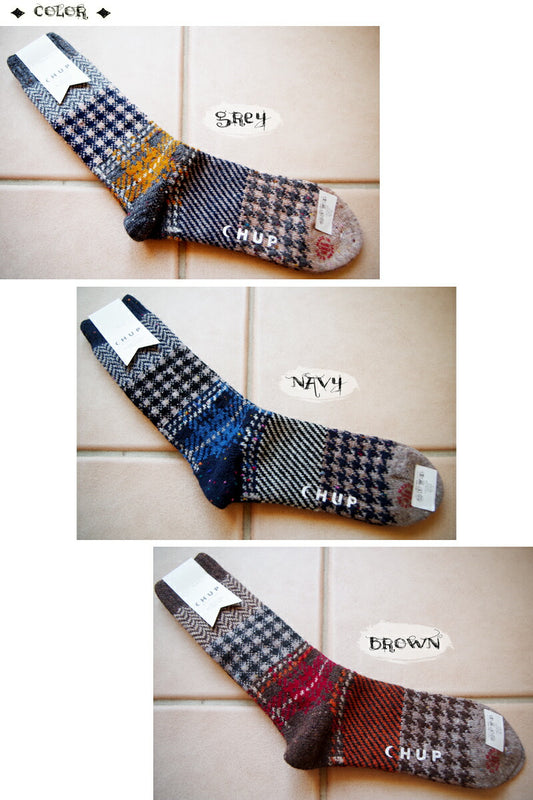 CHUP(チュプ)【数量限定】【メンズ】"WHITE LABEL""FEAR OLANN/フェア オーラン" ミックスパターンソックス(3色)【ツイード/ネップ/千鳥格子/グレンチェック】【日本製/MADE IN JAPAN】