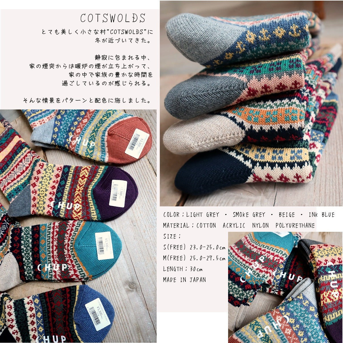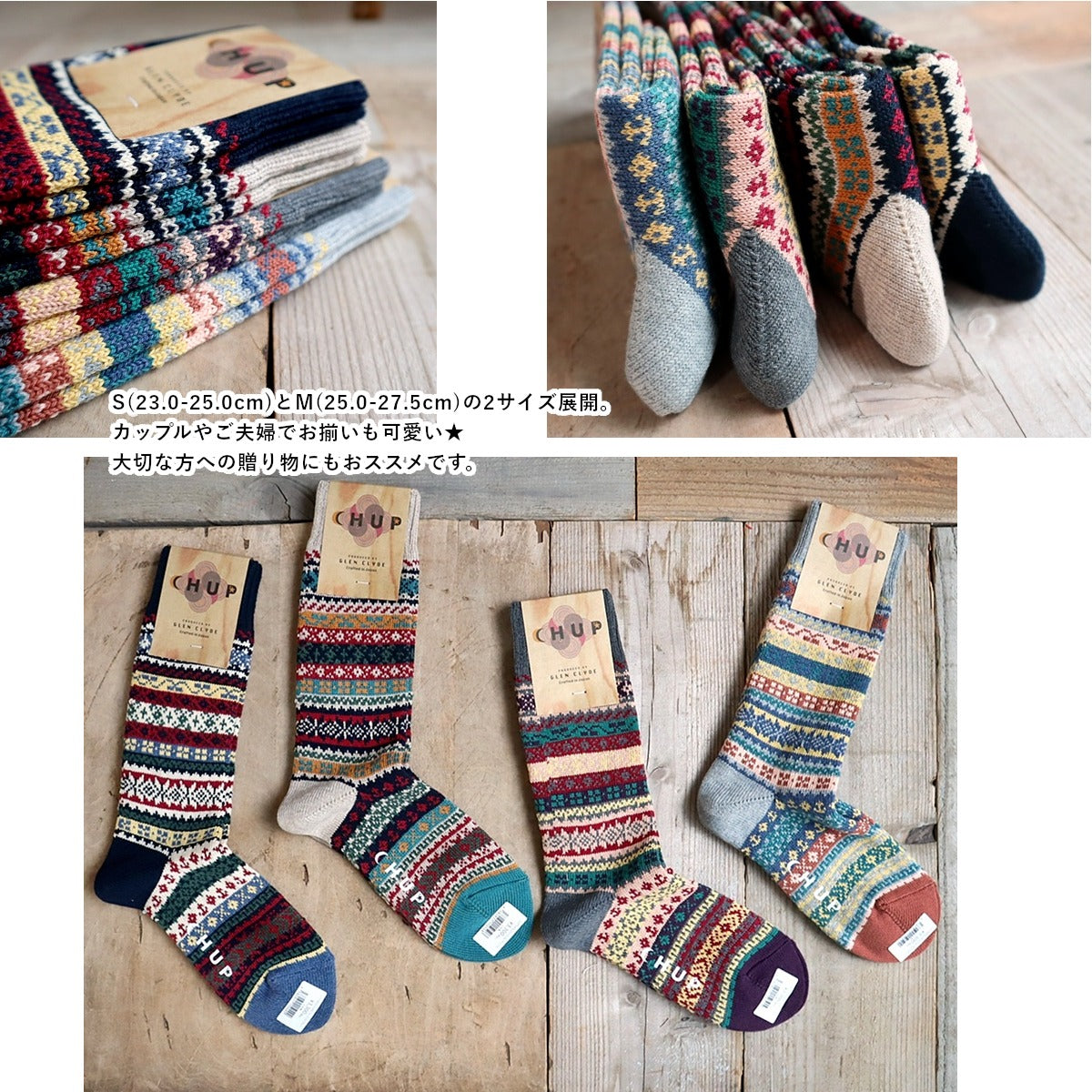 CHUP(チュプ) "COTSWOLDS(コッツウォルズ)" ソックス(4色×2サイズ) 【2025-26年秋冬☆数量限定生産 日本製 再入荷無し 丈夫 適度な厚み フェアアイル柄 ノルディック柄 ナバホ柄】