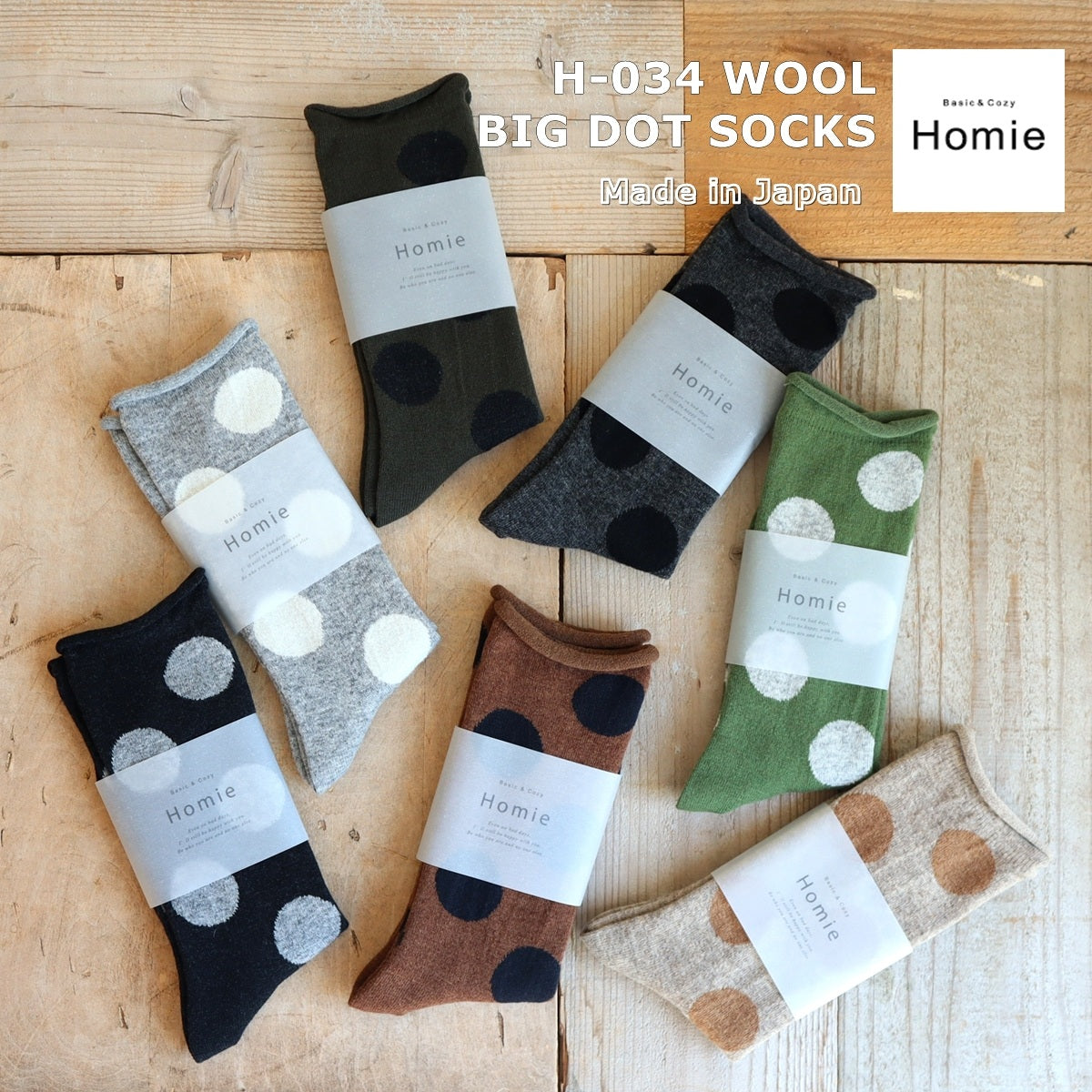 Homie(ホミー/ホーミー)No.H-034 ウールビッグドットソックス(7色)【2025-26年秋冬☆新色追加♪数量限定生産!ウール シャリ感 ドット 暖か 冷えとり】