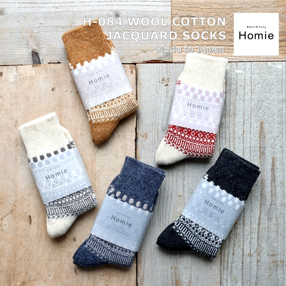 Homie(ホミー/ホーミー)No.H-084 ウールコットン ジャガードドットソックス(5色)【2025-26年秋冬☆数量限定生産!ラムウール シャリ感 暖か 冷えとり】