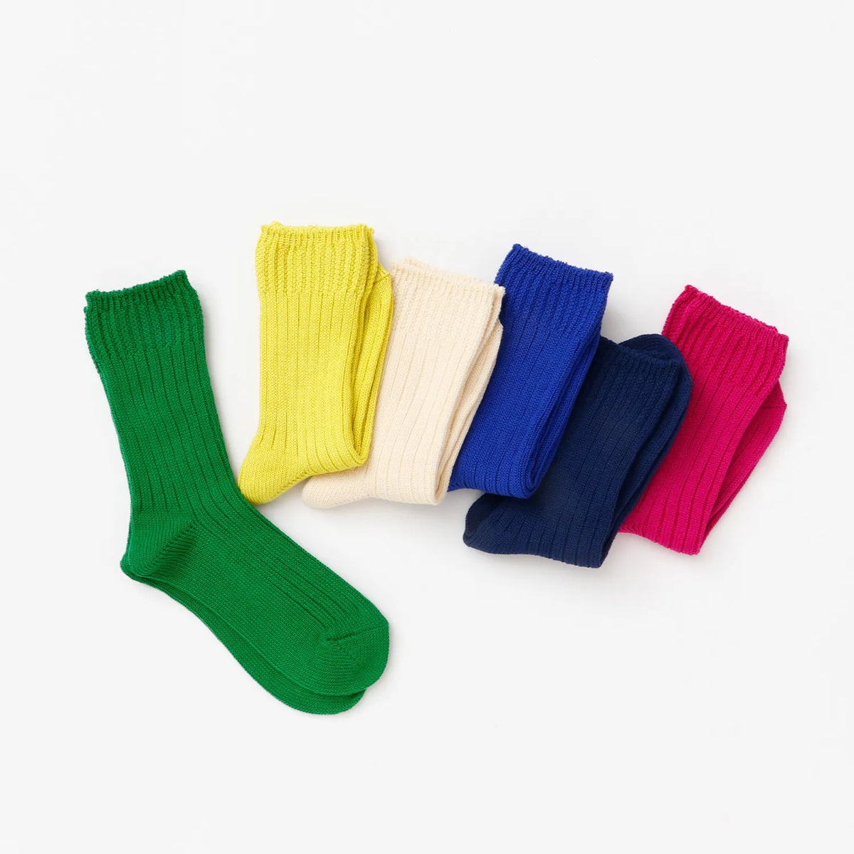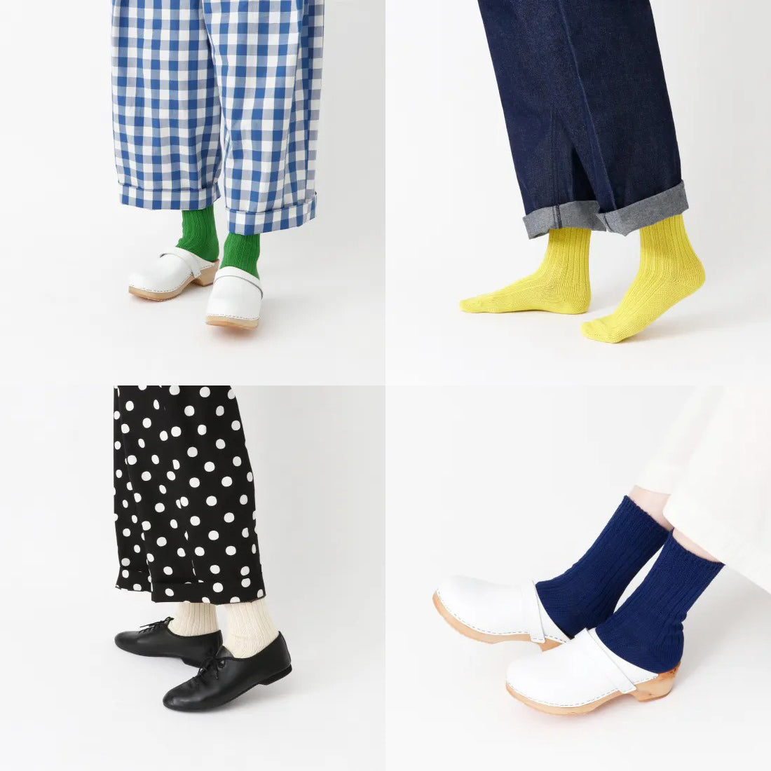 ざっくり感があり履き口の編み方に変化をつけた、毎シーズン人気のリブカラーソックスです。鮮やかな6色展開になりました!