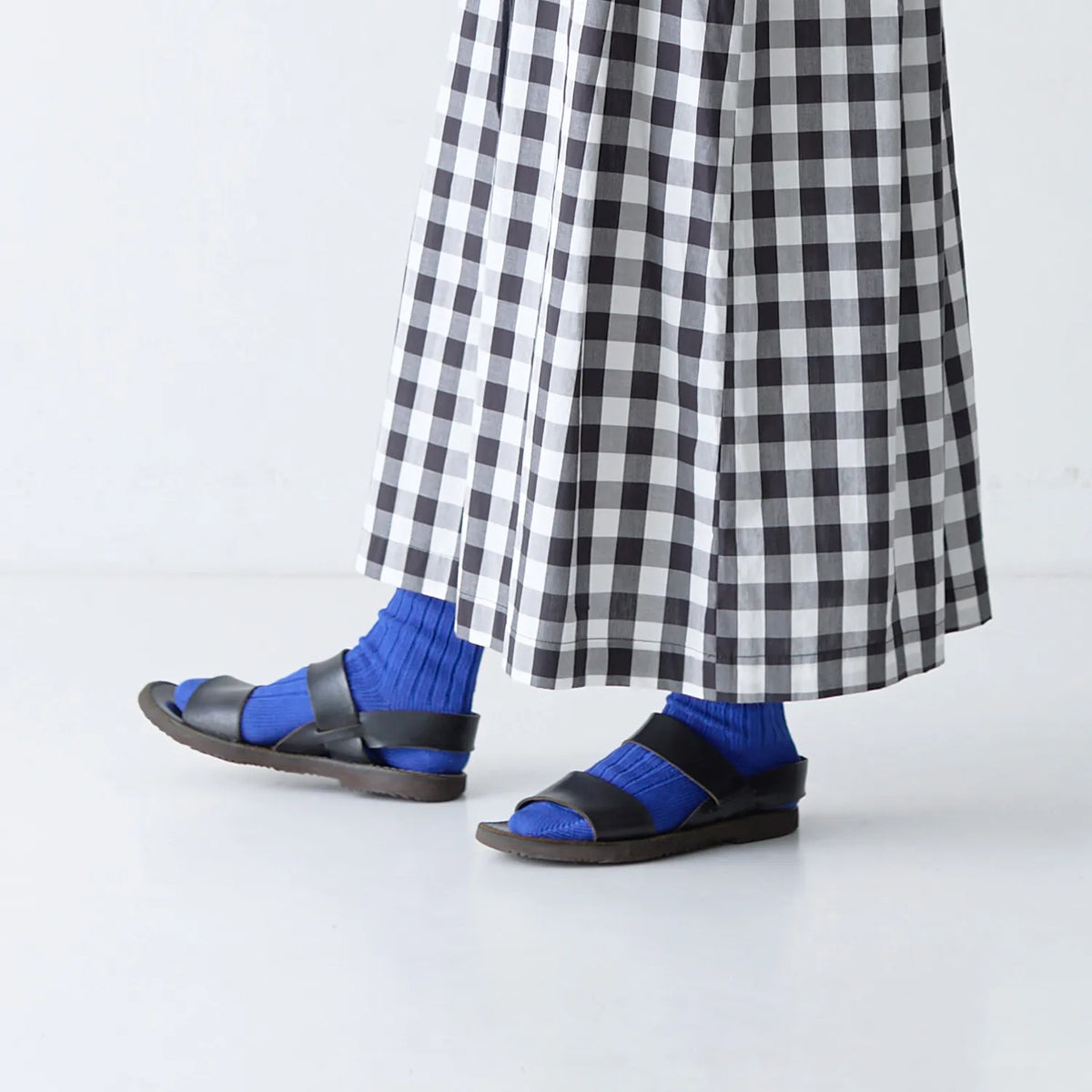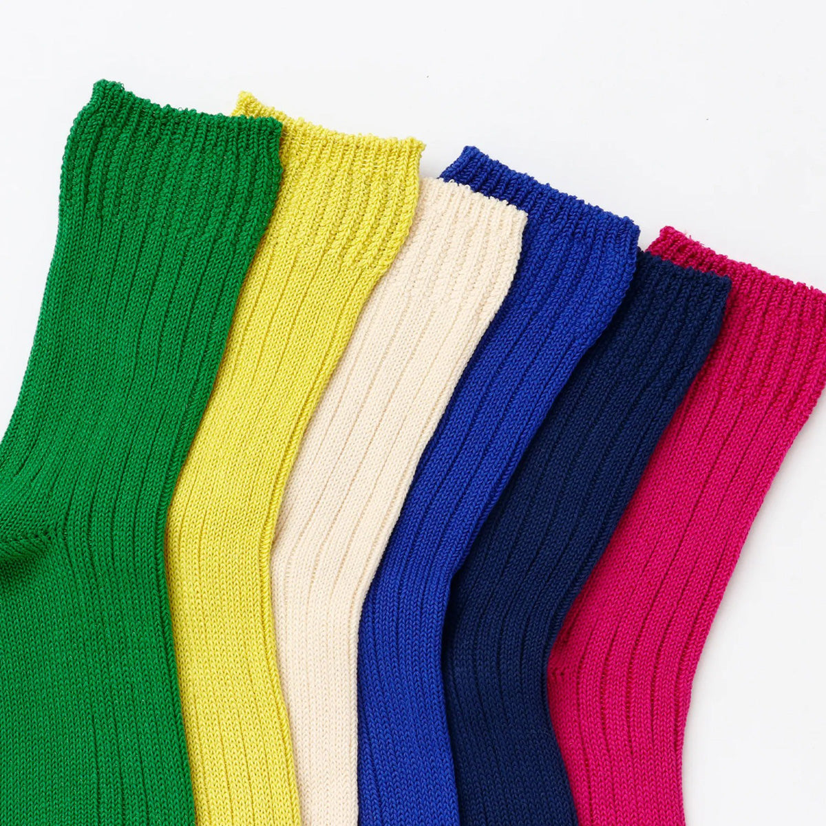 シルケット加工を施した、毛羽の少なく光沢感のある綿糸を使用し、オールシーズン履きやすい、程よい厚みに編み立てました。発色の良い綿糸をたっぷりと使用しています。カジュアルスタイルの差し色におススメ*