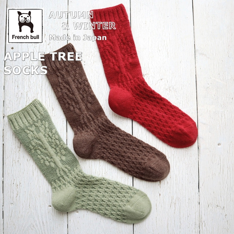 French Bull(フレンチブル)No.11-23270 アップルツリーソックス(3色)【レディース 靴下 日本製 2025-26年秋冬 リンゴの木をイメージ ジャガード編み アンゴラ混 贈り物】