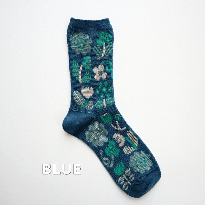 お花に癒され楽しむ日々をイメージしたソックスです。ジャガード編みの凸凹で表現した柄がポイント。