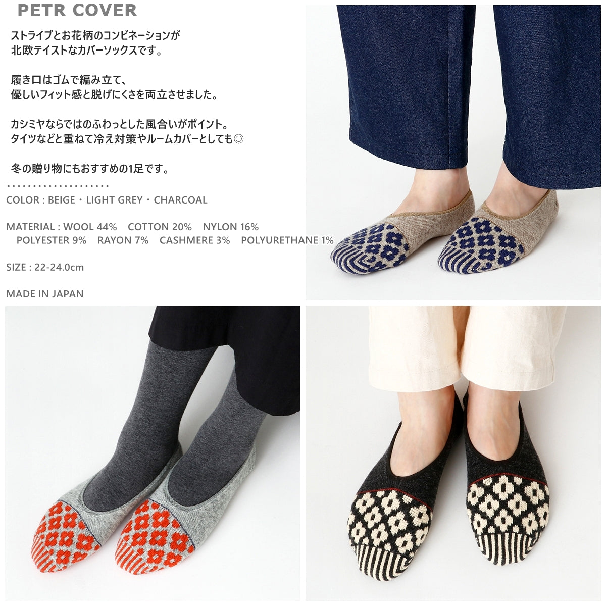 French Bull(フレンチブル)No.11-25267 ペトルカバー(3色)【レディース 靴下 日本製 2025-26年秋冬 ストライプ 脱げにくい 花柄 カシミヤ混 ルームカバーソックス 贈り物】