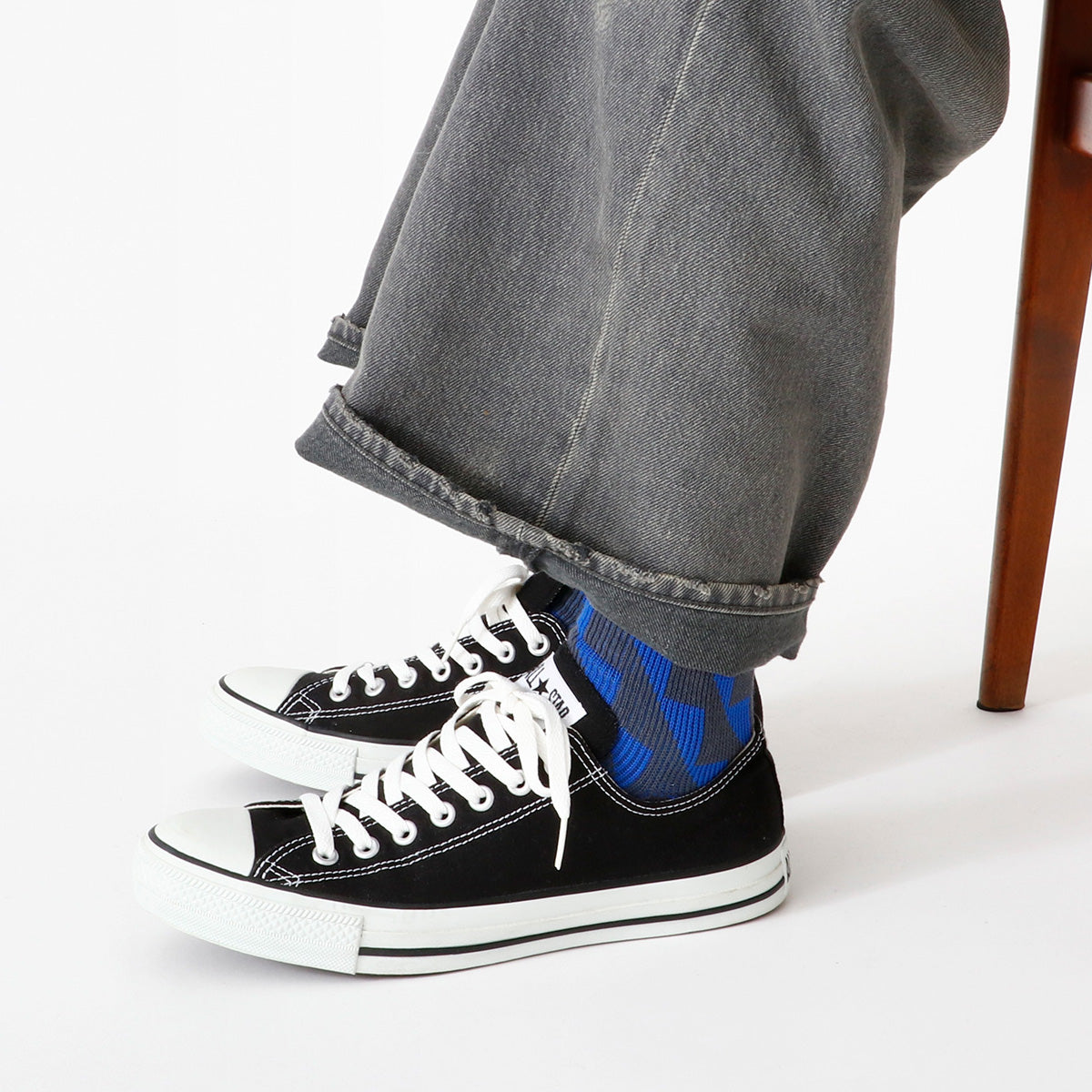 フレンチブルのメンズライン「Jake」のソックスは、大き目サイズの女性向けとしても好評です。