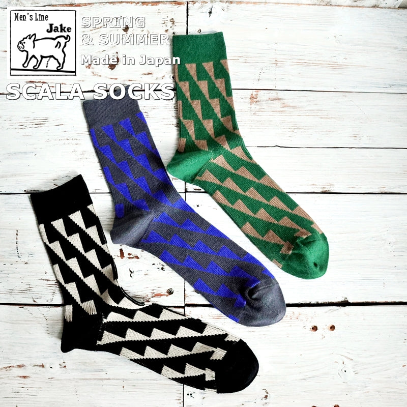 Jake ジェイク French Bull フレンチブル No.21-26101 スカーラソックス(3色) Mens 2026年春夏新作 宴 メンズ レディース大きめ 靴下 幾何学柄 ジャガード編み シルケットの綿糸 日本製【追跡メール便送料無料】